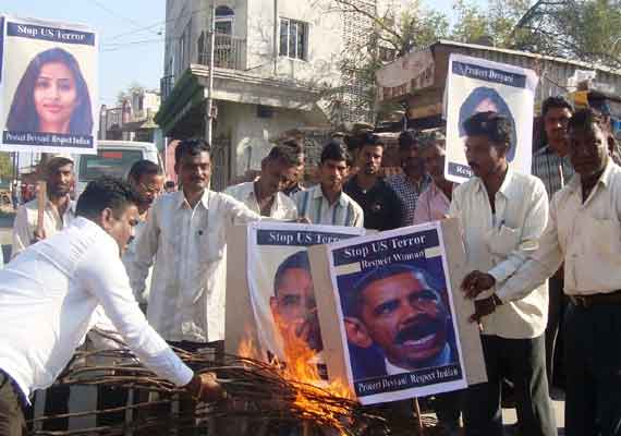 Nagpur, Dec 19: Farmers in a Maharashtra village Wednesday burnt an image of America President Barack Obama, complaining the humiliation and arrest of Indian diplomat Devyani Khobragade who hails from the state.