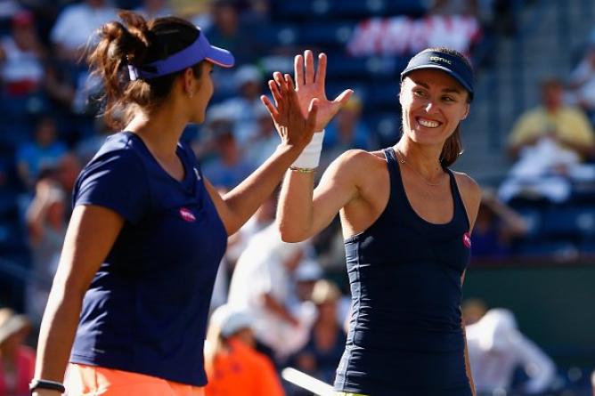 Sania and Martina can take on Russian second seeds Ekaterina Makarova and Elena Vesnina within the final on Sunday.