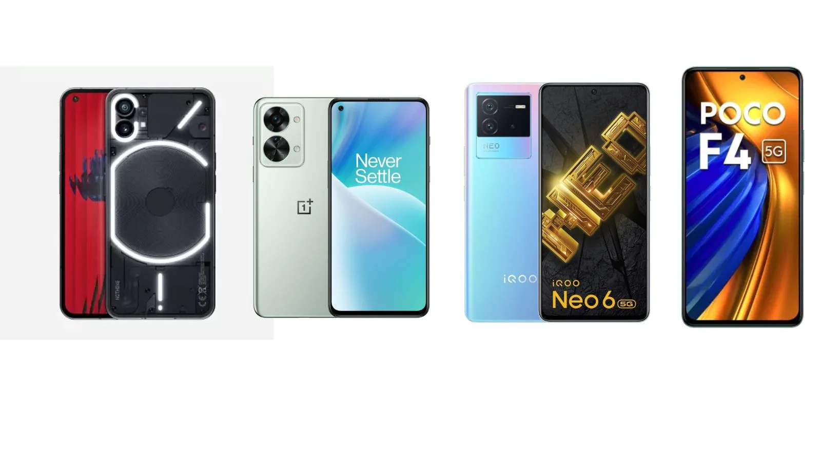 Nothing Phone (1) vs OnePlus Nord 2T 5G vs Poco F4 5G vs iQoo Neo 6: Prices